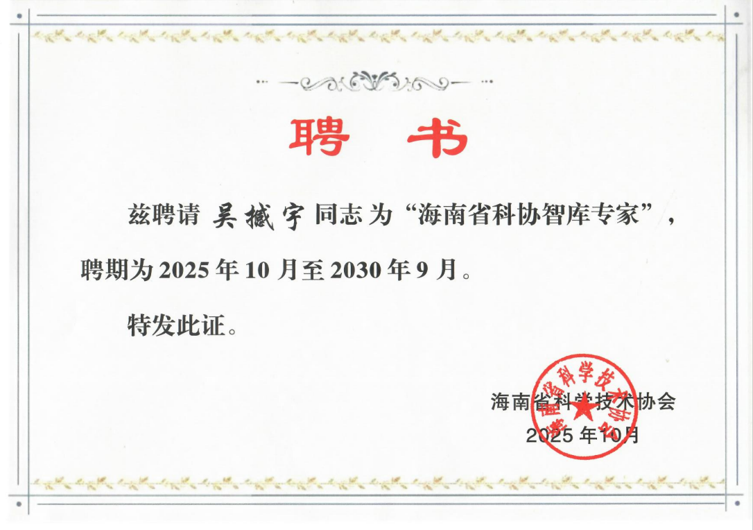 喜报|海南华侨中学吴撼宇副校长受聘为 “海南省科协智库...